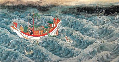 -Nakajima l'île centrale est l'élément esthétique constitutif du jardin. La disposition des rochers rappelle le mont légendaire Reizan où des immortels taoïstes Xianren vécurent autrefois. C'est un lieu sacré de l'éternelle jeunesse et de l'immortalité.