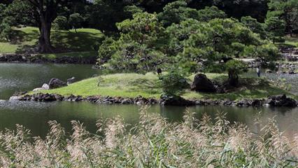 -Dai-Sensui : l'étang lui-même qui s'étale sur une superficie de 9 000 m². Autrefois alimenté en eau salée il est maintenant approvisionné par de l'eau douce. Nakajima et une seconde île plus petite Ukishima symbolisent le lac et l'océan.