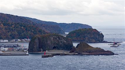 16 octobre : Sur la route la circulation est fluide. L'arrivée sur Abashiri sans difficulté et l'hôtel facilement localisé grâce à la fonction téléphone géniale du GPS. Il suffit de rentrer le numéro de téléphone de sa destination pour que le GPS nous amène à destination. Une fois les formalités à l'hôtel réglées, nous allons explorer cette ville portuaire de 40 000 habitants réputée surtout pour sa prison et son climat hivernal rigoureux : la mer d'Okhotsk est bloquée par les glaces de janvier à avril. A l'automne au moment de notre passage la température est clémente bien que les sommets montagneux se couvrent déjà de neige. Nous allons rester ici trois nuits et l'hôtel sera notre base pour aller explorer le parc national de Shiretoko et le parc national d'Akan.