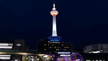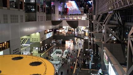 Une semaine à Kyoto ce sera bien insuffisant pour en faire le tour et espérer voir toutes les merveilles dont regorge la ville. La première surprise c'est la gare (achevée en 1997). Une gare démesurée, d'une modernité imparable aux volumes et espaces gigantesque, seize étages dont trois en sous-sol, des escaliers mécaniques qui montent au ciel dans un enchevêtrement de verre et de poutrelles d'acier, des boutiques, des restaurants, des supermarchés, un hôtel et même une salle de spectacle, un centre d'information touristique (très efficace). La sortie de la gare débouche sur un immense parvis où s'entremêlent taxis, bus et piétons. En face de la gare s'élève à 131 mètres la Tour de Kyoto construite en 1964 pour les jeux olympiques, au sommet de laquelle la vue sur la ville est toujours aussi impressionante mais pas plus que la vue offerte depuis le haut de la gare. Notre hôtel est à 5 minutes à pieds de la gare, à côté d'une bouche de métro, endroit idéal pour se déplacer dans la ville.