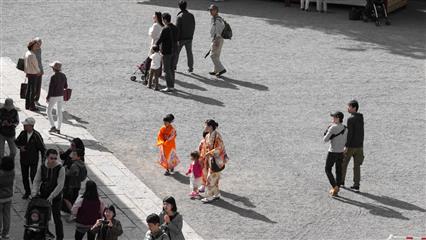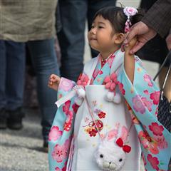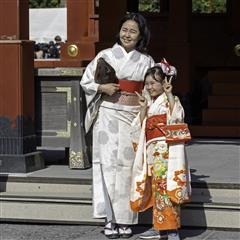 A l'ère Edo les gens du peuple se mirent eux aussi à célébrer Shichi-Go-San dans les sanctuaires shinto où des cérénomies étaient célébrées pour les enfants. La tradition s'est perpétuée jusqu'à nos jours ce qui nous permet d'admirer ces enfants habillés de ces magnifiques habits traditionnels