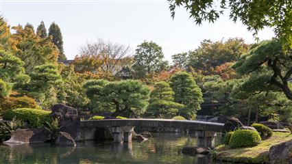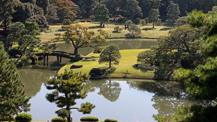 C'est aux abords des sanctuaires shintoïstes que les premiers espaces aménagés virent le jour au Vème siècle. Le premier but était de maîtriser la nature pour qu'elle n'envahisse pas les lieux de culte. A Nara et Kyoto des jardins réalisés à l'époque Nara ont été mis à jour, ils s'inspirent des jardins-rivières chinois caractérisés par un paysage, dans lequel un cours d'eau se jette dans un étang, figuration de celui où Bouddha est représenté sur sa fleur de lotus, associé en fond à un monticule représentant le mont Sumeru symbolisant l'axe du cosmos dans la pensée bouddhique. Ces jardins conçus pour la méditation l'étaient aussi pour la promenade et le divertissement. A l'époque Heian (794-1192) de petits ponts de pierre ou de bois se mirent à enjamber les cours d'eau ondulant entre les différents pavillons. C'est à cette période que fut rédigé le Sakutei-ki, premier traité de l'art de concevoir les jardins. Ce traité emprunte pour la mise en oeuvre de ces jardins un certain nombre de concepts venu du taoïsme, du bouddhisme et du shintoïsme. La majorité dans leur conception évoque le paysage extérieur pré-existant à l'arrière plan, visible par-delà une haie, un mur. Le shakkei ou paysage emprunté défie le principede distinguer le dehors du dedans.