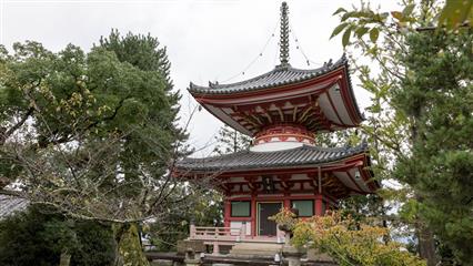Edifice centrale du temple bouddhique au VII è siècle. Construite selon un plan carré autour d'un épais pilier central qui assure sa stabilité malgré les séismes, en une succession de toitures de tailles croissantes de la base vers le sommet et surmontée d'une flèche à la base carrée, d'un bol retourné et de pétales de lotus, une hampe en bronze sur laquelle sont fixés neufs anneaux circulaires.et tout à fait au sommet une sphère symbole bouddhique , le "joyau qui exauce les désirs". Construite exclusivement en bois, sans escalier pour gagner les étages.