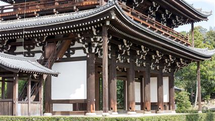 Tous les temples sont en bois jamais en pierre. A Nara des temples bâtis au VIIIème siècle sont encore intacts de nos jours. Cela s'explique par un savoir-faire exceptionnel, savoir-faire transmis exclusivement oralement de maîtres à apprentis, aucun livre ni traité n'existent.