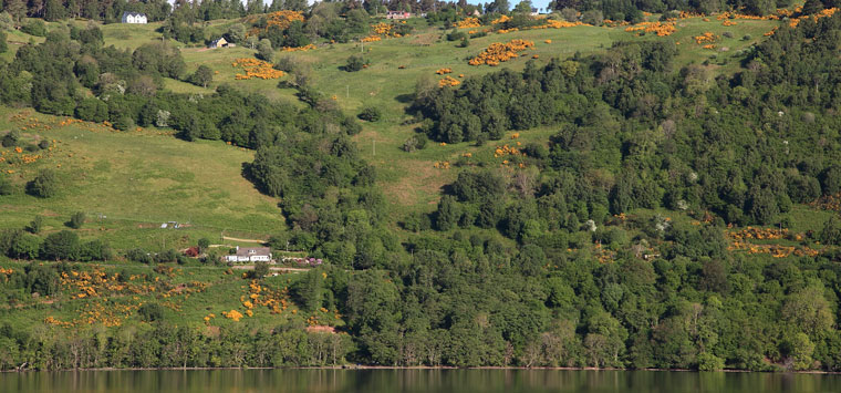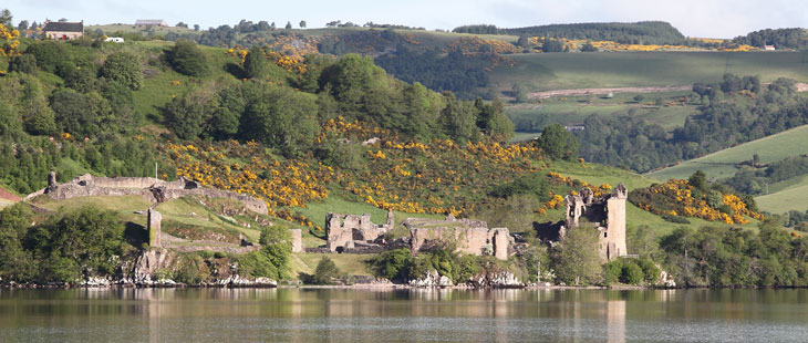 Nous nous éveillons avec la promesse d’une nouvelle journée ensoleillée. Sur vingt mille nautiques il faut emprunter le fameux Loch Ness, célèbre pour son monstre hypothétique. Le vent est tombé, le moteur va être mis à contribution. Le peu de vent présent s’établira de toute façon de face. Le loch Ness est encaissé dans une grande faille, les versants des montagnes qui nous entourent sont jaunis par les genêts et clairsemés de minuscules moutons. Un petit détour pour s'approcher des ruines du magnifique château d’Urquhart installé sur un promontoire rocheux battu par les vents en bordure de berge. La légende prétend que le monstre y fit sa première apparition. Un mouillage est possible dans le nord du château à l’intérieur d’une crique. Le petit loch Dochfour prolonge le Loch Ness dont la beauté sauvage est quitté à regret. Nessie n’a pas daigné montrer le bout du museau, fatigué sans doute des touristes qui le traquent.