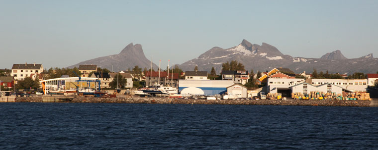 Le 2 juillet au soir après une navigation sans problème la nuit est passée à Sandnessjøen, au pied d’une montagne de 1075 mètres surplombant cette ville de plus de 5000 habitants, et dont le port actif est un dortoir pour nombre de ferries. La marina située tout à fait au fond du bassin offre un bon abri.