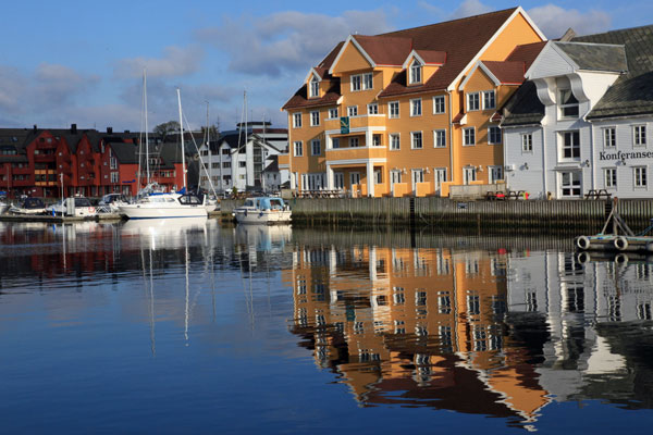 Finalement le passage de Statt se fera sans trop de difficultés. Un 6 de nord-est bien établi et des vagues d'une hauteur maximum de 3,5 mètres et une houle croisée. Nous avions décidé de nous rendre à Ålesund par la route extérieure mais finalement après avoir été chahuté au passage de Statt nous optons pour le passage intérieur et 10 miles de plus car la mer y est beaucoup plus calme. A 20 heures nous nous amarrons à un vieux quai tapissé de vieux pneus bien noirs et crasseux. En nous promenant dans cette ville reconstruite en 1904 après un incendie dans un style très art et déco. Et nous dirigeant vers la marina au fond de la ville nous croisons le Harbour Master du port d'Inverness et son épouse venus sur leur voilier visiter la Norvège.