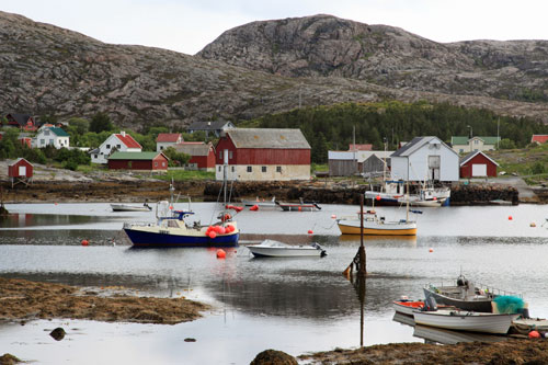 Nous quittons notre havre idyllique pour affronter une nouvelle journée de pluie et de vent toujours aussi peu porteur. A 20 heures la journée est récompensée par un mouillage sur un ponton dans un charmant petit port bien protégé. Nous sommes amarrés à Saetervagen par 64°23' N 10°28'E. Des oiseaux de mer sur un îlet au milieu du port, quelques barques de pêcheurs et un calme serein.