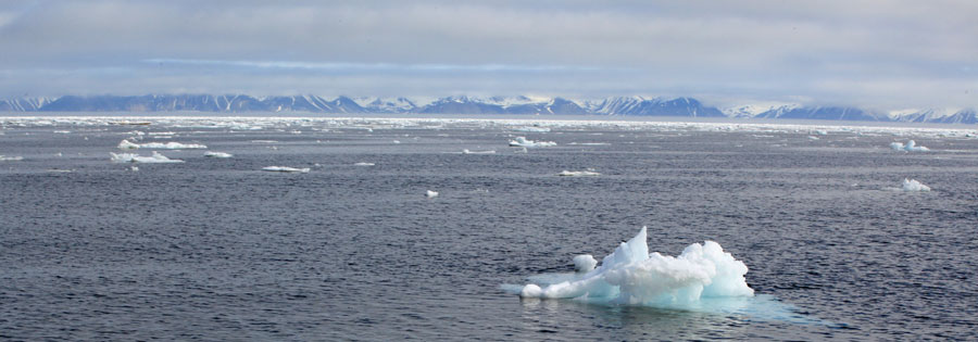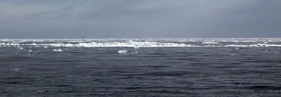 La pointe sud de l'archipel du Svalbard, Sorkapp, est débordée de trente milles à l'ouest. Les dernières informations sur l'étendue du pack de glace datent d'il y a 4 jours, à ce moment-là le pack s'étendait à plus de 25 milles. Au petit matin apparaissent, dispersés, les premiers glaçons, noyés dans le brouillard et flottant sur une mer grise et lisse. Plus au nord dans la matinée, sous le soleil apparu, brille un long promontoire de glace dense, colonisé par d'innombrables phoques se prélassant aux premières chaleurs matinales. Recouvert de plusieurs couches de vêtements polaires l'équipage contourne cet éperon en faisant route au sud-ouest pendant trois milles avant de reprendre la route. Toute la matinée à tour de rôle les deux barreurs vont slalomer à travers les morceaux de glace plus ou moins resserrés, parfois bleutés, aux formes biscornues et infinies. Par trois fois de l'ouest est mis dans la route pour franchir d'autres promontoires. Finalement le pack s'éclaircit pour totalement se dissiper à l'entrée de Bellesund (77° 30' nord) située au sud de Isfjorden entrée du fjord vers Longyearbyen. La progression dans Isfjorden permet d'admirer sous le soleil de minuit les glaciers qui se jettent dans la mer; entourés de montagnes enneigées austères et rébarbatives aux sommets ennuagés. Longyearbyen est touché à trois heures du matin, après 4 jours de traversée.