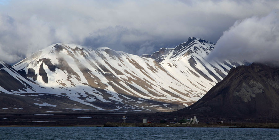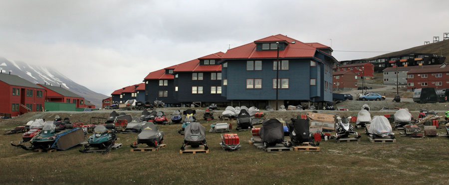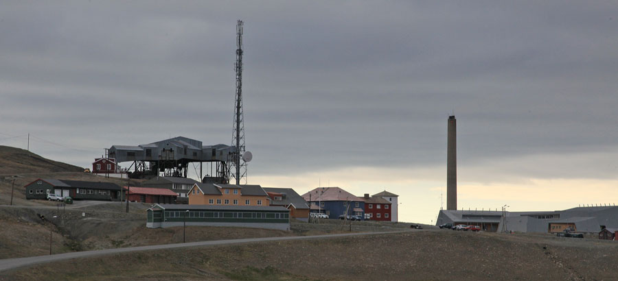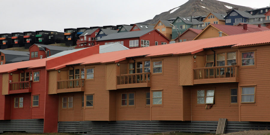 Depuis la mer la ville se détache dans un cadre magnifique marqué des flétrissures des mines de charbon maintenant abandonnées. On accède à la ville en montant par une route goudronnée. Cité peu imposante ses bâtiments de bois colorés se dressent au milieu d'un paysage lugubre dépourvu de végétation à part un peu d'herbe et de lichen avec par-ci par-là, au milieu de la rocaille, des fleurs en bouquet qui émergent. L'agglomération apparait d'une précarité définitive malgré les nombreux édifices en construction. Devant les maisons stationnent, inactifs pour le moment, motoneiges, skis, et volumineuses pelles. Une rue piétonnière, centrale, traverse la ville et est visiblement dévolue au tourisme. En deux jours plusieurs énormes bateaux de croisières s'arrêteront quelques heures vomissant leurs milliers de passagers qui s'empressent de parcourir les boutiques avant de se réfugier rapidement dans la chaleur douillette de leur cabine.