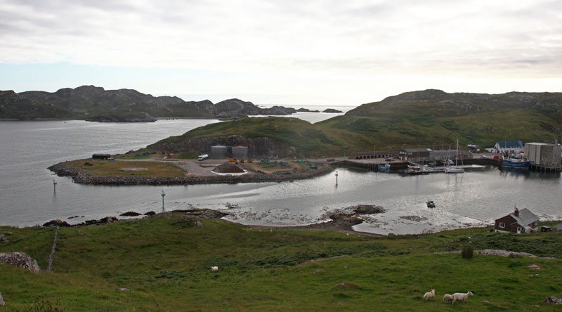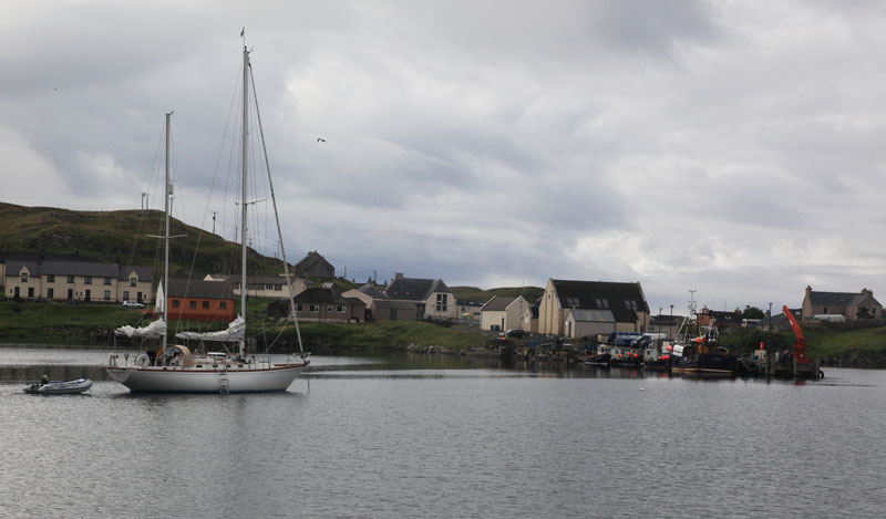 Le vent facétieux a tourné autour du nord de l'Ecosse comme nous. Pour franchir le cap Wrath 25 nœuds de vent "on the nose" plus vent contre courant générant un bon clapot bien sec et remuant. Le cap Wrath sera débordé de 5 miles par pure tranquillité d'esprit. Après avoir franchi le cap enfin du travers avec les vagues qui vont avec. La recherche de l'entrée du port de Kinlochbervie, troisième port de pêche d'Ecosse, se révèlera étonnante : regarder bien la photo. Accès au port par un chenal très étroit entre des têtes de roches bien balisées. Un vrai ponton a été récemment installé et facilite grandement l'amarrage dans le port. Là aussi peu de voiliers de passage. La ville n'a pas d'intérêt particulier en dehors de la beauté du site.