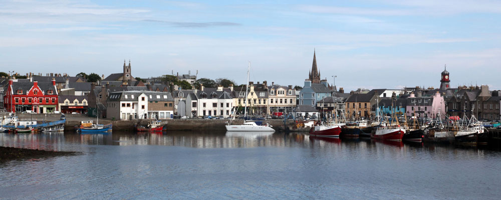 Le lendemain beau temps ensoleillé, croisière agréable jusqu'à Stromness, toujours dans les Orcades. La petite marina en cette fin de juillet est loin d'être bondée, y trouver une place ne sera pas difficile. La ville s'étire en une interminable rue pavée et sinueuse le long de la grève où s'alignent des maisons à pignon possédant chacune son embarcadère. Port de pêche encore actif même si la pêche au hareng et à la baleine, qui fit sa richesse et celle de la Hudson's Bay Company, appartient maintenant au passé.