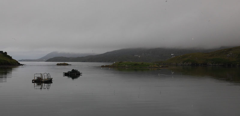 2 août : Dans la soirée arrivée à Loch Boisdale île de South Uist. Pluie sans vent, visibilité réduite. Un loch sans aucune activité à part le vol des oiseaux.