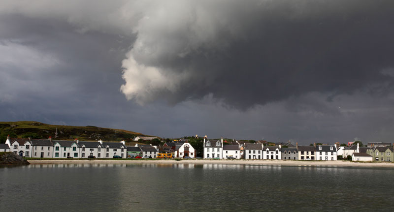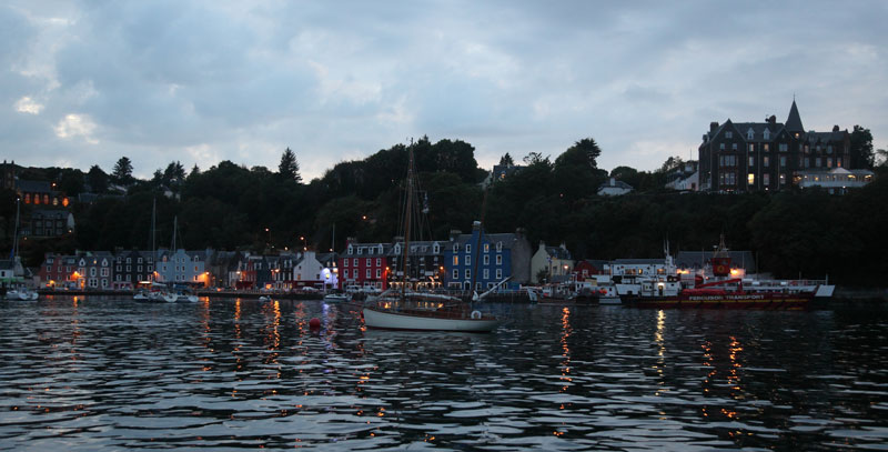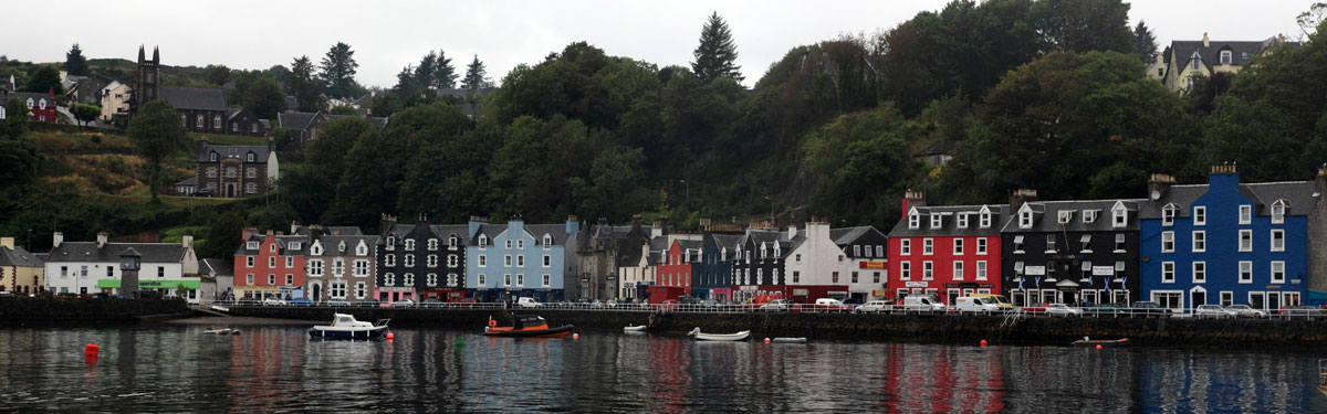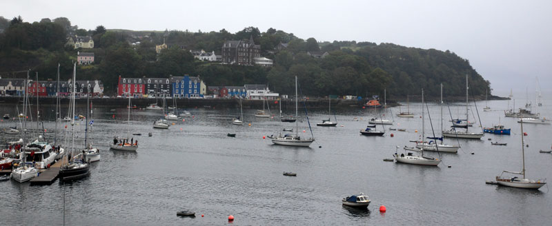 3août : Retour à la civilisation en arrivant à Tobermory, île de Mull en fin d'après-midi. Prise d'un coffre dans la jolie baie. Sur le quai s'aligne une suite de maison toutes colorées, sur les hauteurs de nombreuses maisons et leur jardin fleuri dominent la baie. La distillerie à proximité du port ne se visite pas. En fin d'après-midi arrivée en provenance d'Oban d'une régate avec au moins une cinquantaine de voiliers et l'ambiance qui accompagne ce genre de manifestation. Le retour au monde civilisé quoi!!