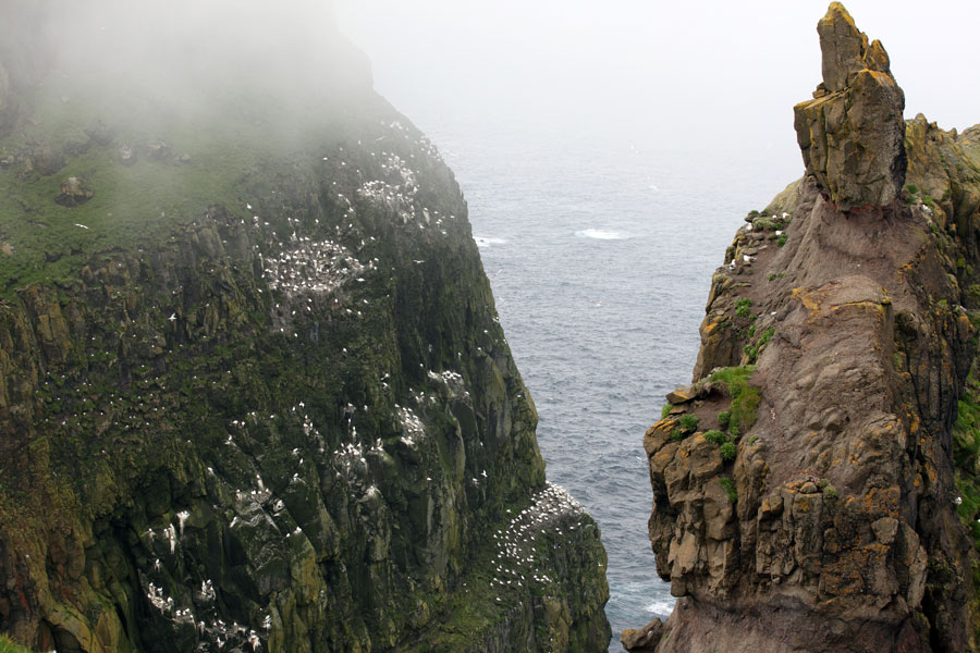 28 juillet : Départ à 5 heures du matin. La marée n'attend pas, surtout avec un courant de 8 nœuds au maximum du flot ou du jusant. Pluie et brume, impossible d'apercevoir les belles falaises de Hoy et surtout "Old Man of Hoy" un rocher spectaculaire de grès rouge, haut de 137 m, qui émerge des flots perpétuellement agités du Pentland Firth..