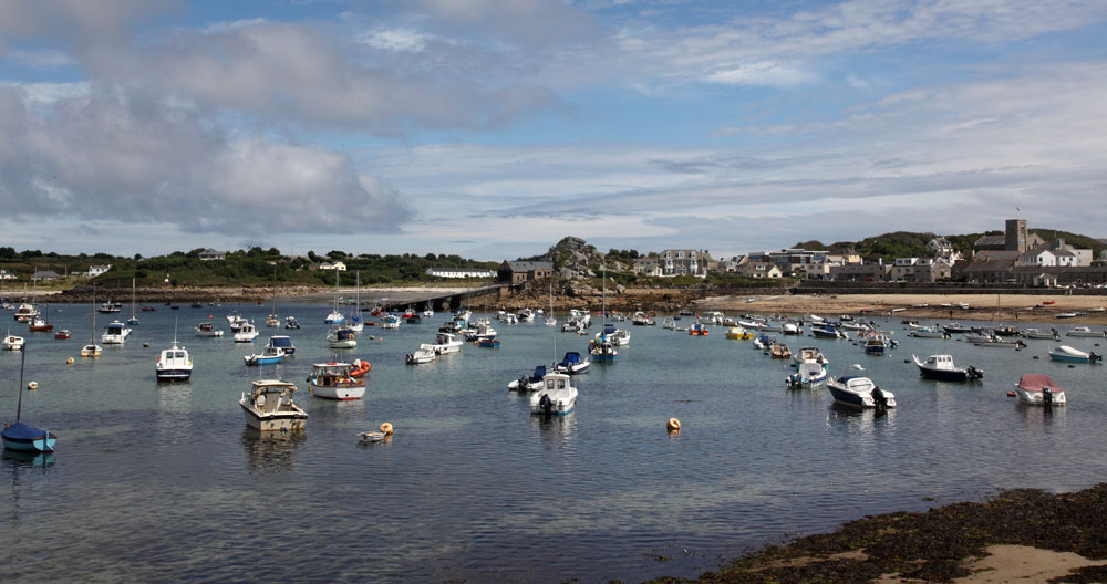 16 août : A la mi-journée départ pour la traversée de la manche vers les îles Sorlingues. Un bon vent par le travers mais dans la nuit pétole. Au petit matin sur une mer calme et sous un crachin presque breton mise en route du moteur. Prise d'un coffre à Hugh Town à 12h30. Peu de monde. C'est manifestement déjà la fin de la saison. Un beau soleil règne sur les Scilly dans l'après-midi et permet de profiter de la beauté de cet archipel.