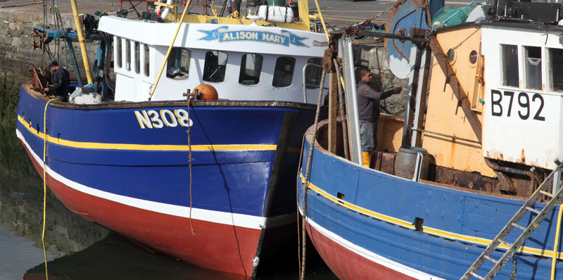 15 août : Coup de vent prévu pour la nuit prochaine. La traversée de la Manche vers les îles Sorlingues est décommandée. Direction le charmant petit port de Kilmore Quay sur la côte sud à 18 nautiques dans l'ouest. Beau temps. L'endroit est mal famé avec de nombreux cailloux disséminés sur le parcours. L'entrée dans le port est matérialisée par un alignement que même les pratiques locaux respectent car le chenal d'accès et parsemé d'embûches. Ne pas s'en éloigner d'autant plus qu'une barre surprenante, Saint Patrick Bridge, se crée au moment de la renverse en pleine mer. En arrivant devant l'entrée du port deux chalutiers sont amarrés de part et d'autre des deux môles. L'espace entre les deux paraît tout petit, mais finalement suffisant pour y glisser Noème. Quelques pontons installés au milieu de la darse pour les bateaux de passage. Le long des quais des bateaux de pêche, côté ouest les petits, côté est les plus grands, à couple. Il y a encore ici une grosse activité de pêche.