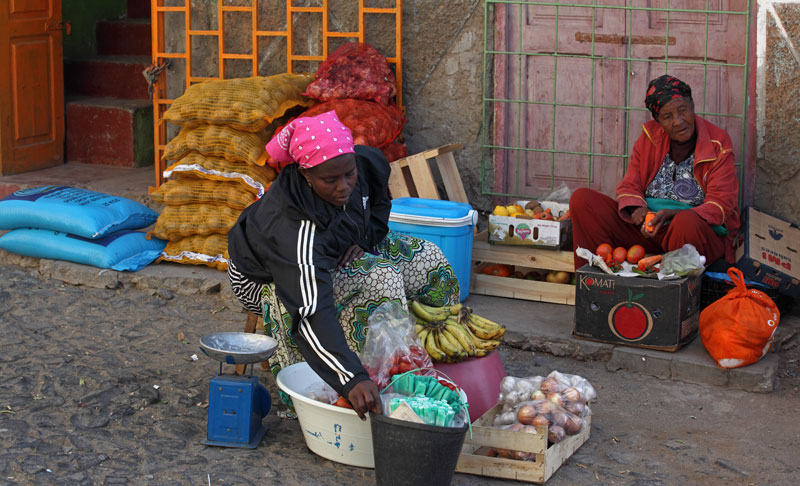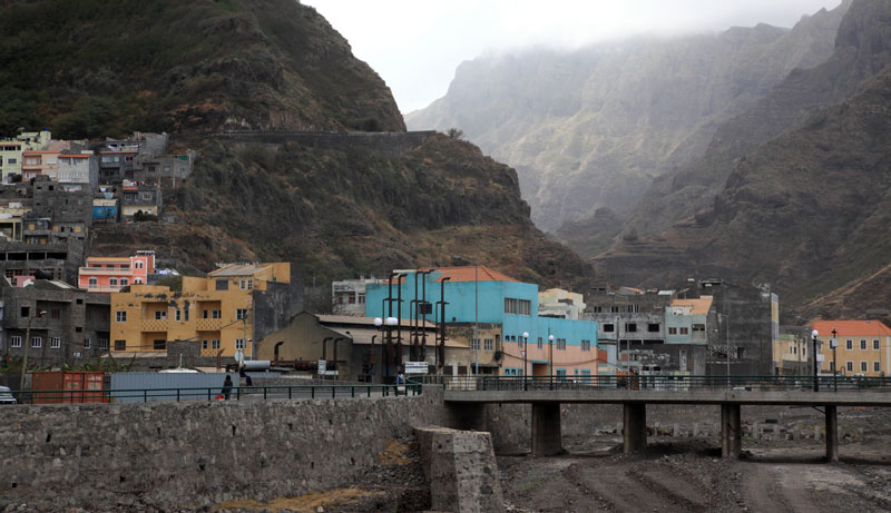 Sao Vicente, une île ocre où le Monte Verde culmine à 774 m. Quasiment dépourvue de végétation à part quelques rares acacias et touffes d'une herbe rase. Pourtant aux détours des chemins de jolis jardins maraîchers étalent leur verdure et colorent un peu cet environnement gris sable. Il faut absolument grimper sur le Monte Verde, à son sommet la vue sur Mindelo et sa baie est imprenable.