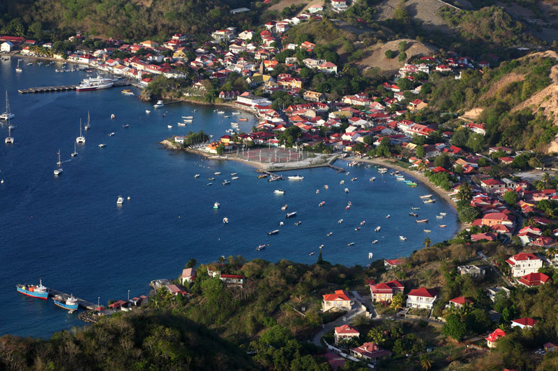 Beaucoup plus difficile de mouiller à Marie-Galante toute ronde sans réelle baie. Mouillage possible sur fond de sable de bonne tenue devant Saint-Louis dans une grande baie ouverte sur la façade Est, calme et protégée. A Grand Bourg une jetée délimite un petit havre mais la place est limitée et c'est là qu'accostent les navettes arrivant de la Guadeloupe avec leur lot de touristes.