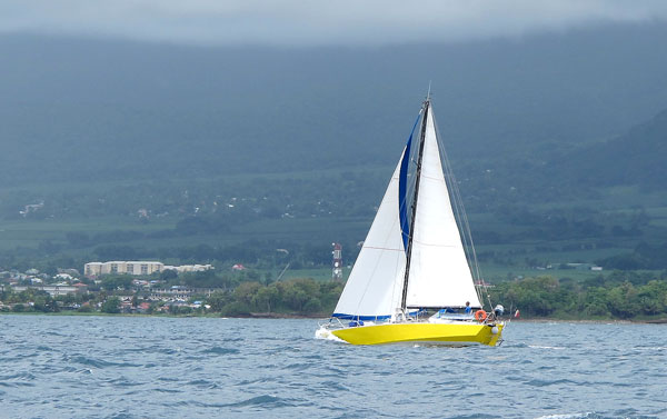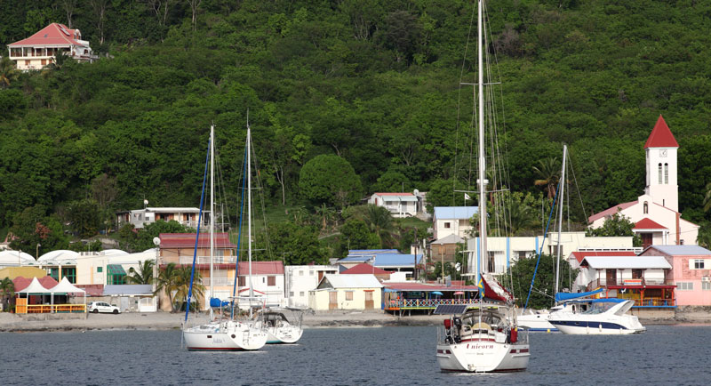 Le phare de Vieux Fort vigie de la pointe sud sépare l'Atlantique de la mer des Caraïbes, dès qu'il est dépassé le mer devient alors plus douce, le vent plus paisible. La remontée sur Deshaies, mouillage prévu pour la nuit, est agréable à part deux rotations brutales de vent à 180°. La première après avoir dépassé Vieux Fort et la seconde à la hauteur de Malendure. Pas de difficultés pour mouiller dans la baie de Deshaies si ce n'est de nombreux voiliers évitant sur leur ancre. Belle soirée avec musique d'ambiance provenant d'un hôtel sur le rivage.