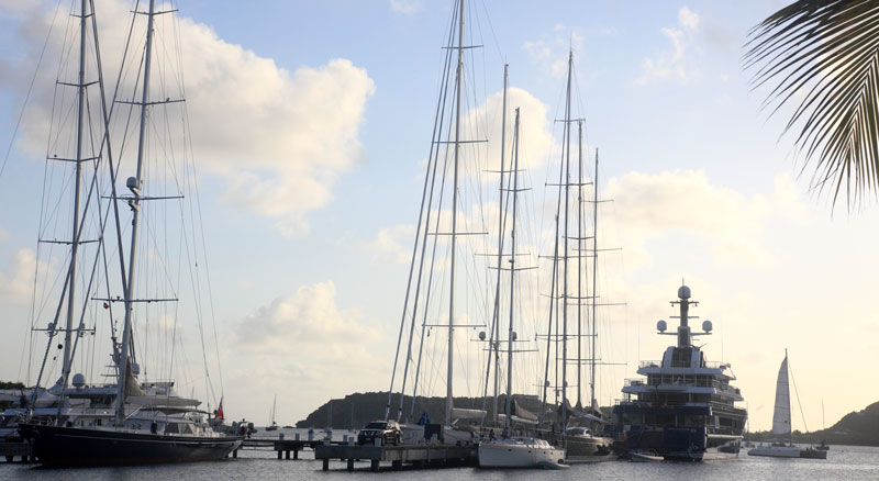 Au fond de la baie de English Harbour et de Falmouth Harbour plusieurs marinas acceuillent des Méga-Yacht. Rééllemnt la taille de ces bateaux est impressionnante autant voiliers que motor-yachts. Malgré cela l'île ne semble pas briller d'une grande richesse par comparaison aux Antilles Françaises.