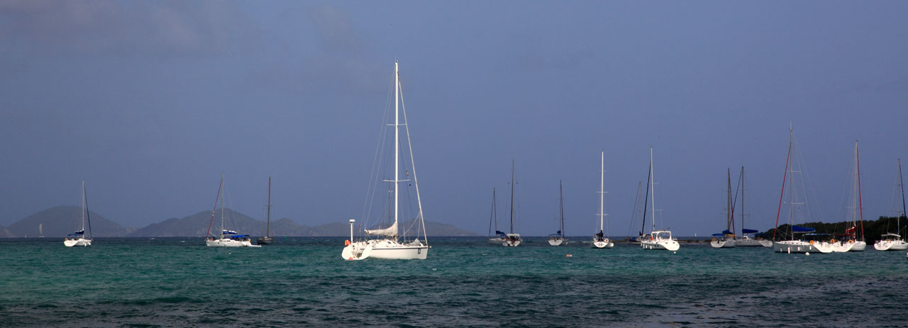 En milieu d'après-midi Virgin Gorda, la plus à l'est des Îles Vierges Britanniques, apparaît dans la brume de chaleur. Le mouillage pour ce soir est prévu à Saint Thomas bay entrée de Spanish Town. Pour y arriver il faut contourner l'île et longer toute la côte sud avant de virer à Round Rock passage situé entre des îlots coralliens puis remonter au nord sur 4 milles pour ancrer dans la baie. A 18 heures le mouillage est encombré, mouillage à la limite du chenal d'accès au port dans un vent qui s'est rafermi en cette fin de soirée. L'eau turquoise est une véritable caricature de cartes postales.