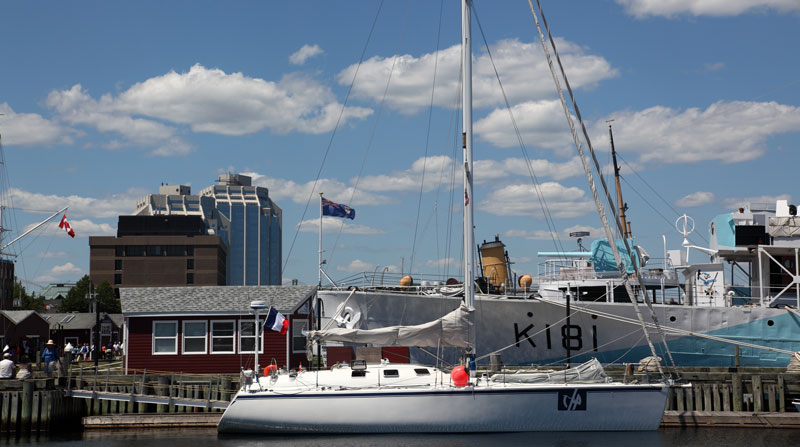 Au centre ville, en face du musée maritime, les quais ont été amménagés et les bateaux de passage peuvent s'y amarrer. Si le stationnement est gratuit la journée une redevance est appliquée pour ceux qui y passent la nuit. Une fois amarrés la première démarche est d'appeller le centre téléphonique des douanes qui gèrent l'entrée des voiliers de plaisance au Canada. Seul le capitaine peut descendre à terre. Une fois la communication établie votre interlocuteur vous demande les mêmes renseignements que partout ailleurs dans le monde et à la fin de l'entretien vous annonce que des douaniers vont passer à bord pour compléter les formalités. Une heure plus tard environ, deux douaniers montent à bord, posent une ribambelle de questions avant d'aller inspecter discrètement le bateau. Nous n'aurons pas droit aux questions sur le tabac et l'alcool du bord (de toute façon nous n'en avons pas) mais ils seront curieux de connaître nos revenus financiers pour savoir si nous pouvons assumer pécunièrement notre séjour chez eux et ce que nous avons comme aliments et sous quelle forme (seul les conserves sont tolérées). Finalement ils nous délivrent un numéro de permis de séjour pour trois mois, à renouveler éventuellement avant de nous souhaiter de bonnes vacances et de se retirer.