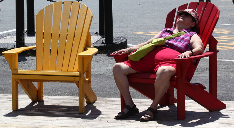 7 juillet : lever à 5 heures du matin pour aller faire le plein de gazole (moins cher qu'au Canada) et il fait déjà grand jour. Dès le départ un vrai gymnkhana s'engage avec les toujours innombrables casiers mouillés anarchiquement dans la baie et les divers chenaux. Il faut rester vigilants pour éviter d'en accrocher un. Vent de sud-ouest 15/18 noeuds, mer belle, soleil voilé. Le beau temps persiste. Le gennaker est envoyé et restera à poste toute la nuit car le vent est faible. Au petit matin une vedette des gardes-côtes canadiens viendra faire un petit tour de Noème, les deux occupants nous saluerons. Un appel sur la VHF pour leur demander ce que nous devons faire. En réponse ils nous souhaiteront tout simplement une bonne journée sans autres formalités. Le vent va encore s'atténuer, la progression est molle. Comme il continue à faire beau la prochaine escale sera Halifax, il n'y aura pas d'escale à Shelburne. La seconde nuit en mer sera tout aussi agréable. Quelques rares bateaux seront croisés et encore d'assez loin.