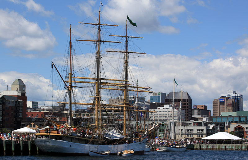 19 juillet : Retour sur Halifax le temps de profiter d'un Tall ship, c'est- à-dire un rassemblement de vieux gréements (essentiellement venus des US ) prévu du 19 au 22 juillet. Ces vieux grééments, histoire de la marine à voile, sont toujours un plaisir pour les yeux. On imagine les manoeuvres nécessaires pour manipuler toutes ces voiles et hisser la voilure dans la mâture. Que penser des manoeuvres de réduction de cette même voilure dans le mauvais temps? La vie sur ces voiliers était dure, coriace et les marins endurants.