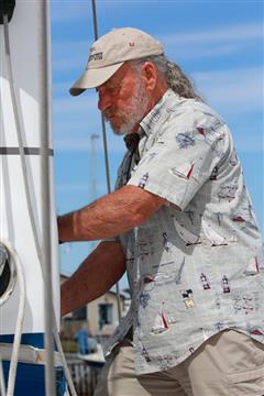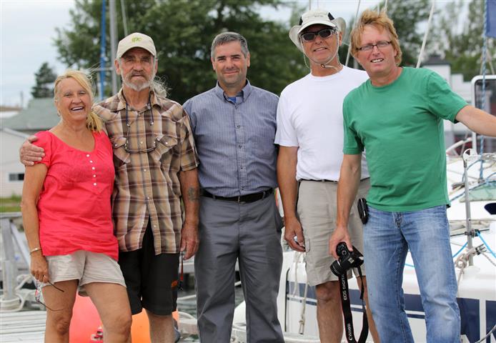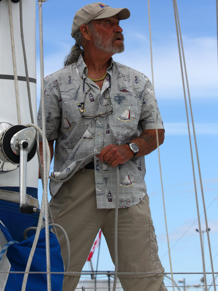 Peter est là bien sûr, il a été décidé que Jim, un ancien du service des télécommunications canadiennes, va monter au mât, décapeler l'enrouleur, Peter le traducteur ainsi que quelques autres complètent l'équipe. En moins de 3/4 heure l'enrouleur est sur le quai.