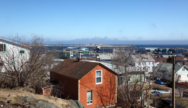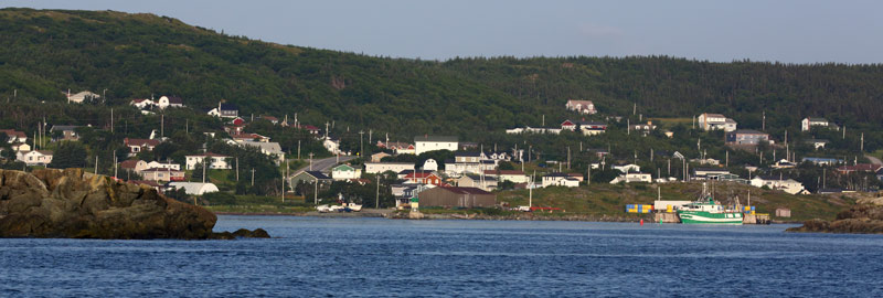Un dernier signe de la main et Noème s'engage dans le chenal de sortie et glisse sur l'eau sous l'action d'une brise légère et régulière, direction Saint Anthony à 200 milles à l'extrémité nord de Terre-Neuve. Une belle navigation pour cette reprise après ce mois d'inactivité. L'accès à Saint Anthony se fait par un goulet étroit et coudé qui s'ouvre sur une grande baie bien protégée. Il y règne une grande activité de pêche et les quais sont encombrés de nombreux chalutiers. Il y a une petite place derrière un gros motor-yacht battant pavillon des Vierges Britanniques, cela nous évitera d'aller mouiller au fond de la baie, il est beaucoup plus commode de descendre à terre à partir d'un quai que d'avoir à utiliser une annexe.