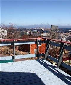 14 avril : Arrivés dans la soirée à Saint-Pierre. Claude un ami de Brigitte et Alain nous attendait pour nous mener à leur maison. Ces derniers, actuellement en métropole, ont mis à notre disposition leur maison sur les hauts de Saint- Pierre. La vue est très belle depuis la terrasse qui domine la baie et l'entrée du port. Parfois, par temps clair, au loin, Terre-Neuve se laisse deviner. Mais surtout pour préparer Noème (qui n'a pas souffert des difficiles conditions hivernales de SPM) cela sera bien plus agréable, car travailler et loger dans le bateau au milieu du bazard aurait été difficile et ce d'autant plus que Noème est au sec. Et enfin grand luxe, nous disposons aussi de leur véhicule. Merci à eux.