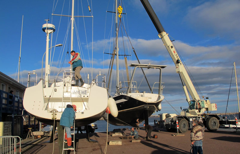 10 novembre : Coque nettoyée, carène propre, défenses rentrées, demain nous allons pouvoir passer l'antifouling. Cela sera plus facile que de le faire au mois d'avril car les températures sont toujours basses au début du printemps, l'hiver prenant tout son temps en ces contrées pour se retirer et laisser la place au printemps.