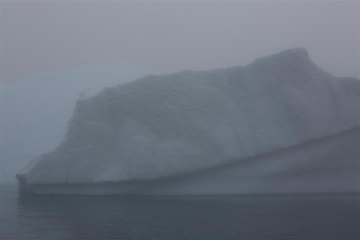 21 juillet : Départ pour le sud. Temps splendide et clair. Environ 55 milles à parcourir avant d'arriver au mouillage prévu : Tigssalukhavn (61°22'N 48°55'W). Deux heures après le départ le brouillard commence à se former tout doucement par de fins nuages filandreux qui flottent dans l'air. Puis ils s'épaississent de plus en plus au point que la visibilité se réduit toujours plus. Et brusquement un brouillard à couper au coteau avec une visibilité réduite à 30/40 mètres. Rien que bien banal certes mais il y a tellement d'icebergs et de growlers que la veille va être difficile. Le radar permet de visualiser la quasi totalité des morceaux de glace flottants mais il y a quelques fourbes qui ne se laissent pas deviner au radar et seraient prêts à partir à l'assaut de la coque. Une veille au radar est indispensable et une veille dehors permet de repérer les fourbes. Ainsi se passera la journée à surveiller de manière attentive les glaces. A la toute proximité du mouillage la brume se lève provisoirement. Dix minutes après avoir mouillé la brume se referme. Le mouillage est étroit mais bien protégé, le fond de vase.
