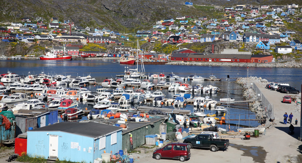 Qaqortoq : La Blanche. Capitale du Sud Groenlandais, un peu plus de 3000 habitants. Elle a le privilège d'être, pour beaucoup, la plus jolie ville du pays. Très active : centre touristique important, ville étudiante, grosse activité de tannerie (essentiellement des peaux de phoques adultes), pêche, élevage de mouton. Elle joue un rôle économique et politique majeur au Groenland.