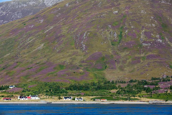 26 août : Navigation tranquille vers Tobermory sur l'île de Mull, le vent alternant avec des calmes. De l'île de Mull, aux reliefs marqués, aux lochs profonds et superbes, aux falaises rocheuses à la lande sauvage colorée de mauve par la bruyère en fleur, aux châteaux hantés et menaçants, se dégage un charme paisible. A Tobermorry, avec ses façades de maisons toujours aussi colorées, la saison touristique tire à sa fin, de nombreuses bouées de mouillage sont libres et il y a même des places aux pontons. Par contre la distillerie est fermée (de toute façon elle ne se visite pas) mais le pub où il est possible de déguster quand même un verre du whisky Tobermory n'est jamais bien loin.