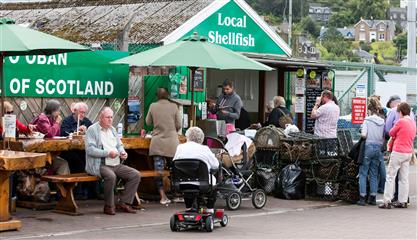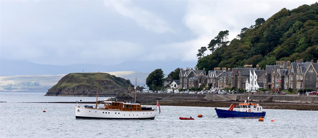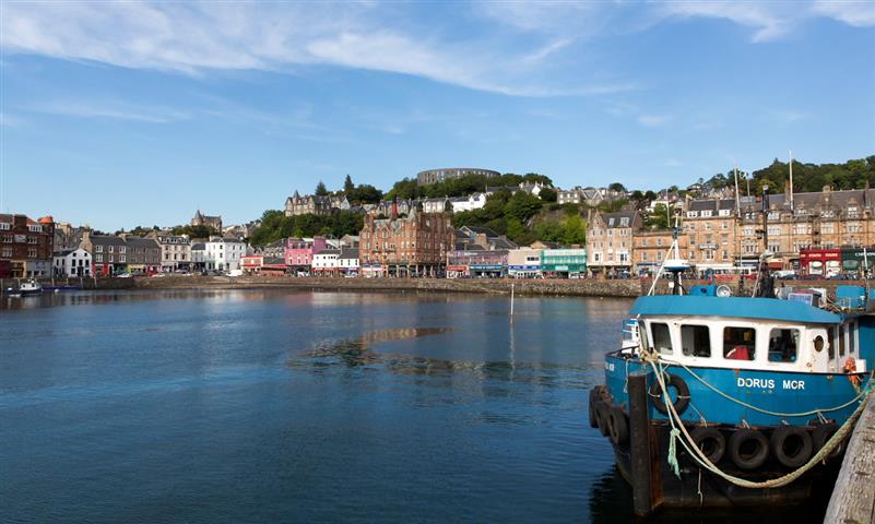 La ville est dominée par une copie du Colisée en granit, bâtiment élevé en 1897 de par la volonté d'un banquier de Oban mais jamais achevé, de cette reproduction le point de vue sur la ville et la baie est splendide. Quais et front de mer sont agréables à parcourir. Au bout des quais près de la gare maritime, se vend des sandwichs aux fruits de mer délicieux ou en salade. Corinne et Guy ne manqueront pas de les goûter.