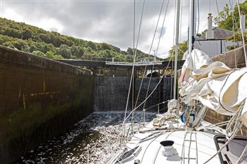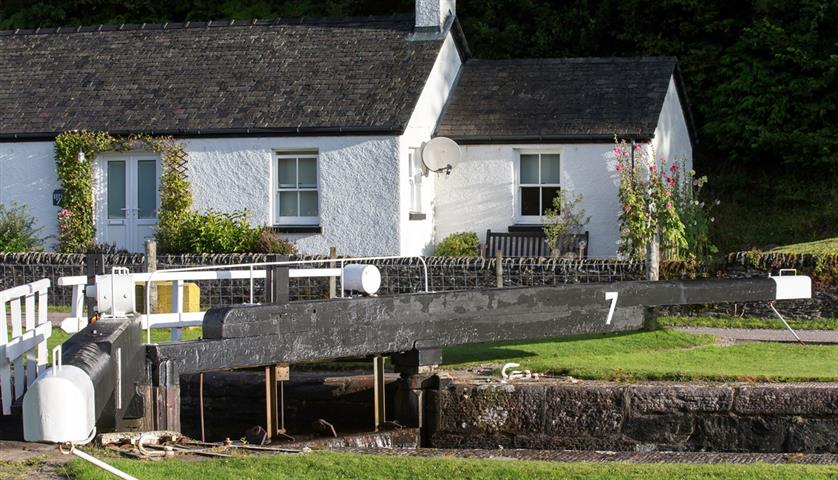 30 août : Avant le passage du canal de Crinan il faut affronter le passage du Sound of Luing réputé pour son courant et ses tourbillons. Malgré le vent qui souffle assez fort le passage est vite avalé car sur le fond nous filons à plus de 12 noeuds. A midi l'entrée du canal est devant l'étrave. Un appel VHF et l'éclusier ouvre la porte du sas d'entrée. Amarrés dans la première écluse nous allons remplir la feuille de passage et verser notre obole destinée à l'entretien du canal. Long de 14,5 km le canal relie le Sound of Jura à Ardrishaig dans le Loch Fyneet et permet ainsi aux navigateurs d'éviter le Mull of Kintyre à la mauvaise, mais justifiée, réputation, pour rejoindre le bassin de navigation de la Clyde. Les écluses, à part la première et la dernière, sont ouvertes et fermées par les équipages des bateaux en transit. Le mode d'emploi est simple : ouvrir la porte de l'écluse en poussant une grande barre de bois peinte en noir mais à l'extrémité blanche en fournissant un certain effort et la pousser en sens inverse pour la refermer. A 17 h tout s'arrête, les écluses ne doivent plus être manipulées cela pour rééquilibrer le niveau de l'eau au cours de la nuit dans l'ensemble du canal. Des petits quais sont mis à disposition le long des berges pour passer la nuit. Tout est calme et reposant pas de vie trépidante, une voiture de temps à autre passe sur la route c'est à peu près tout.