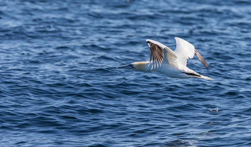 A la pointe sud les courants sont si violents que la mer tourbillonne et bouillonne. Les remous ne peuvent être évités car trop nombreux. Un bateau de pêche sorti du port peu de temps après nous essaie lui aussi d'éviter les plus gros remous et change plusieurs fois de direction. Par mauvais temps la mer doit être particulièrement dangereuse..Dix milles au sud de la pointe de Suduroy la mer redevient normale avec une houle régulière. Noème avance grand-largue avant de se retrouver travers dans la nuit sans lune. Vers une heure du matin le vent est parti se coucher, un grand calme s'étend sur la mer, même la houle s'apaise. Les bateaux de pêche nombreux ponctuent la nuit de points lumineux mobiles aussi erratiques qu'un vol de papillon. Il faut veiller. Nous ne sommes plus dans des mers peu ou pas fréquentées. A plusieurs reprises nous changerons de route pour nous éloigner des chalutiers. Au petit matin le vent se réveille, les nuages se sont dissipés au cours de la nuit et les premiers rayons du soleil éclairent la mer constellée de pingouins torda, guillemots et autres fous de bassan