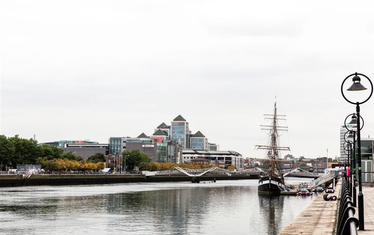 Le centre-ville est facilement accessible à pied en remontant les berges de la Liffey le fleuve qui traverse la ville de part en part et où des vikings s'étaient déjà installés au XII ème siècle. Le port s'est déplacé plus près de l'embouchure de la Liffey et les anciens quais et docks ont été entièrement réhabilités, une longue promenade longe les quais et c'est très agréable d'y déambuler pour atteindre le centre-ville et puis Dublin se visite à pied car finalement c'est une petite ville.
