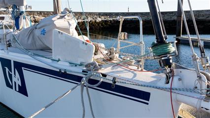 Arrivée en fin d'après-midi. Le port de plaisance est tout neuf et quasiment vide mais le maître de port est serviable et dans la soirée il repart avec le balcon. mais voilà nous sommes un vendredi soir et le balcon réparé ne reviendra que lundi. Par contre pour la voile pas de solution, mais il nous reste la trinquette et les voiles de petit temps. Nous allons attendre le balcon et repartir.