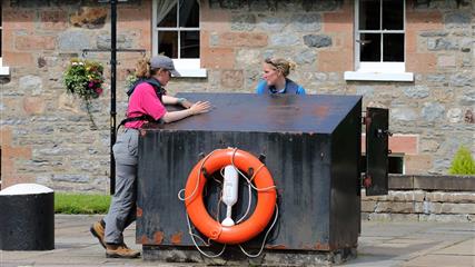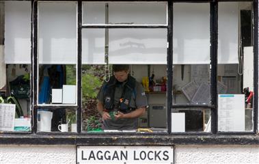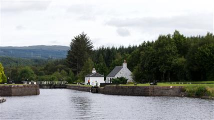 20 juillet : 8 heures, prêts pour l'appareillage. La première écluse est située à l'ouest de l'embouchure de la rivière Ness. Nous avions prévenu dans la matinée l'éclusier de notre arrivée. Les portes sont ouvertes. Seuls dans l'écluse aucun autre bateau. L'éclusier fait notre entrée et nous annonce que puisque c'est un retour le prix du passage sera un peu moins onéreux que celui de l'aller. Soit une économie de 60 livres. Nous allons rester une journée à Seaport marina car à nouveau l'alimentation du moteur a un problème. Juste après notre départ d'Inverness marina le moteur s'est à nouveau étouffé malgré le nettoyage du réservoir effectué à Stavanger.