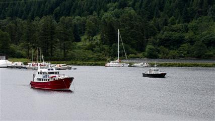 Le grand bassin de Corpach accueille les bateaux qui veulent passer la nuit avant de quitter le canal et retrouver la mer. Il y a là des Américains des Anglais des Français des Allemands des Néerlandais. Sur le canal nous avons aussi croisé des Polonais, des Suédois, des Norvégiens, des Finlandais, des Danois et un Canadien. Un vrai petit monde cosmopolite.