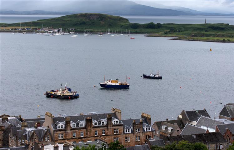 25 juillet : A la sortie du canal passage devant Fort William, direction Oban petite croisière de quelques milles sous la pluie avec quelques éclaircies lumineuses. Un petit séjour à Oban (voir nos précédents passages) le temps de laisser passer une dépression de plus. Oban la ville où la reine Victoria aimait venir y passer quelques jours de vacances.