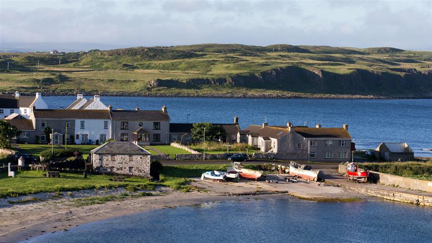 Une centaine d'habitants y demeurent à l'année contre un millier au XIX ème siècle. Un peu plus de monde l'été essentiellement des marcheurs qui empruntent soit le ferry soit un catamaran rapide au départ de Ballycastle 10 km au sud pour venir découvrir la beauté sauvage de cette île dont le calme semble faire oublier les nombreux massacres perpétrés sur l'île au cours des siècles ( en 1557 Sir Henry Sidney dévaste l'île, en 1575 Francis Drake et John Norreys attaquent l'île sur ordre du comte d'Essex et tuent des centaines de femmes et d'enfants du clan MacDonnel, en 1642 les soldats du gouverneur Campbell tuent des centaines de MacDonalds en particuliers des femmes précipitées du haut des falaises au seul reproche que toutes ces personnes seraient catholiques). L'île fut occupée dès le néolithique et les vikings s'y installèrent quelques centaines d'années (de nombreux vestiges archélogiques de ces périodes ont été retrouvés sur l'île). Au XVIII ème siècle l'île devint un important centre de production du Kelp (grandes algues brunes).