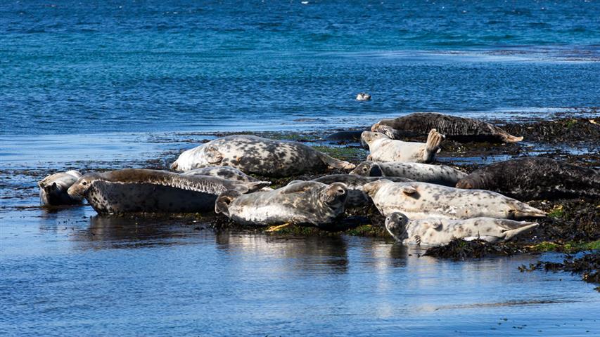 Sur les hautes falaises et les promontoires rocheux escarpés nichent des milliers d'oiseaux marins : macareux, petits pingouins, fous de bassan, goélands, guillemots. 90 marches mènent à une plateforme d'observation de ces oiseaux marins située près de Rathlin west Lighthouse, phare construit de 1912 à 1919, à la pointe ouest de l'île. Sur les plages se prélassent des phoques.