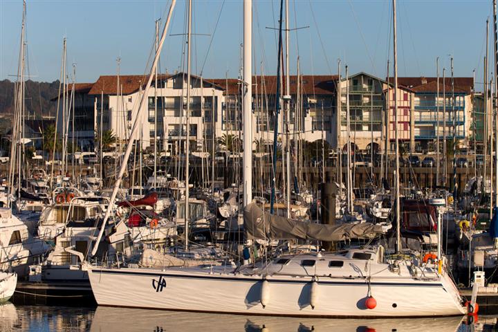 Le vent se calme un peu puis apparait l'entrée de la Bidassoa, puis la baie de Chingoudy encombrée de nombreux voiliers au mouillage. Enfin le port d'Hendaye. Après un petit tour, impossible de trouver une place que ce soit au ponton visiteurs ou un autre ponton. Saturé le port. Finalement nous accostons une vedette qui semble ne pas avoir bougé depuis longtemps. Une fois à couple et les formalités effectuées il est temps de se pencher sur ce p..... d'enrouleur. Après maints efforts il faut se rendre à l'évidence. Bloqué, complètement bloqué.