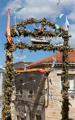 25 juillet : Ribadeo. La ria de Ribadeo est le lien naturel qui unit le territoire galicien et les terres asturiennes sur l'autre rive. La principale localité de cette ria profonde, dessinée par la rivière Eo, est Ribadeo. Le marquis de Sargadelos fut l'instigateur moderne de cette ville dont l'édifice le plus éminent est le «pazo» (manoir) moderniste des frères Moreno. Au départ du port de Porcillán, d'origine romaine, une agréable promenade à pied conduit au phare de l'île Pancha, situé à l'entrée de la ria, en passant par les ruines du château de San Damián. Au retour, quoi de plus agréable qu'une dégustation des produits de la mer extraits de la ria, tels que bucardes, clovisses et huîtres qui, avec les saumons, truites et anguilles de l'Eo, sont les vedettes de la gastronomie locale. Sans oublier les desserts exquis élaborés par les religieuses du couvent Santa Clara.Il faut réserver un moment pour contempler As Catedrais, une étendue de sable parmi les plus belles du littoral galicien. Ses rochers, en formant des arcs naturels, semblent dessiner une cathédrale. Ce paysage magique et changeant selon les marées couronne cette superbe promenade face à l'immensité de la mer.