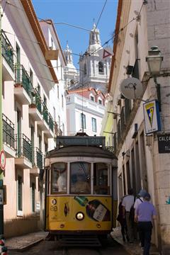 12 juillet : Le vent a soufflé de nord avec intensité (25/30 noeuds ) pendant 5 jours avant de se calmer un peu et que nous décidions de remonter sur Lisbonne sans avoir à tirer trop de bord, nous n'avions tiré qu'un seul bord du cap Saint vincent à Sines certes un peu musclé mais qu'un seul bord. Cette fois-ci nous allons tirer un seul bord de moteur car pas de vent même en passant le cap Espichel. Une fois rentrés dans l'estuaire du Tage, peu de bateaux, nous le remontons jusqu'à la marina Marinaexpo à 13 milles en amont. Marina très calme, confortable et moitié moins chère que les marinas de Cascais et Oeiras, sans les nuisances de la marina de Doca de Alcantara. Pour se rendre à Lisbonne il suffit de prendre le bus à l'arrêt tout proche de la marina et 10 minutes plus tard vous êtes arrivé au fameux quartier de l'Alfama, le vieux coeur de Lisbonne. Un lascis de ruelles odorantes et étroites, pavées, parcourues par les rails des tramways, des successions de placettes ombragées, les maisons décorées de guirlandes de linges, des escaliers étroits et tortueux. Parfois s'échappe d'une fenêtre grande ouverte un air de fado.