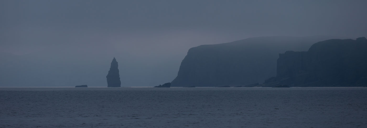 30 juillet : Pas de vent trajet au moteur jusqu'à Kirkwall aux îles Orcades. Avant d'arriver sur les Orcades juste au moment d'embouquer le Eynhallow Sound un banc de brouillard dense s'est brutalement installé réduisant la visibilité à moins de 50 m. Peu de voiliers y compris dans les mouillages. Début août les plaisanciers commencent à rentrer. Nous-mêmes décidons de faire demi-tour car la météo pour la semaine à venir annonce l'absence totale de vent des Shetland aux Féroés.